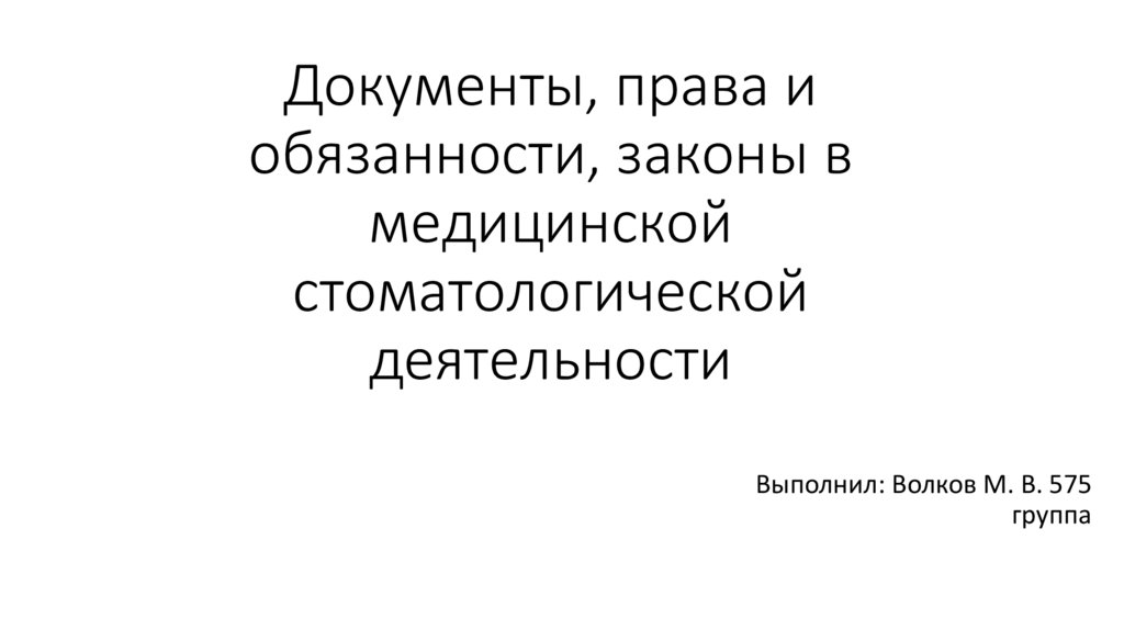 1. Документы, права и обязанности, законы в медицинской стоматологической деятельности