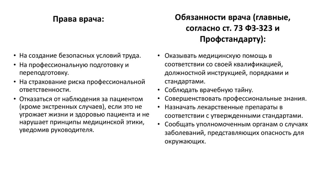 базовые понятия, права, обязанности, принципы, организацию медпомощи.