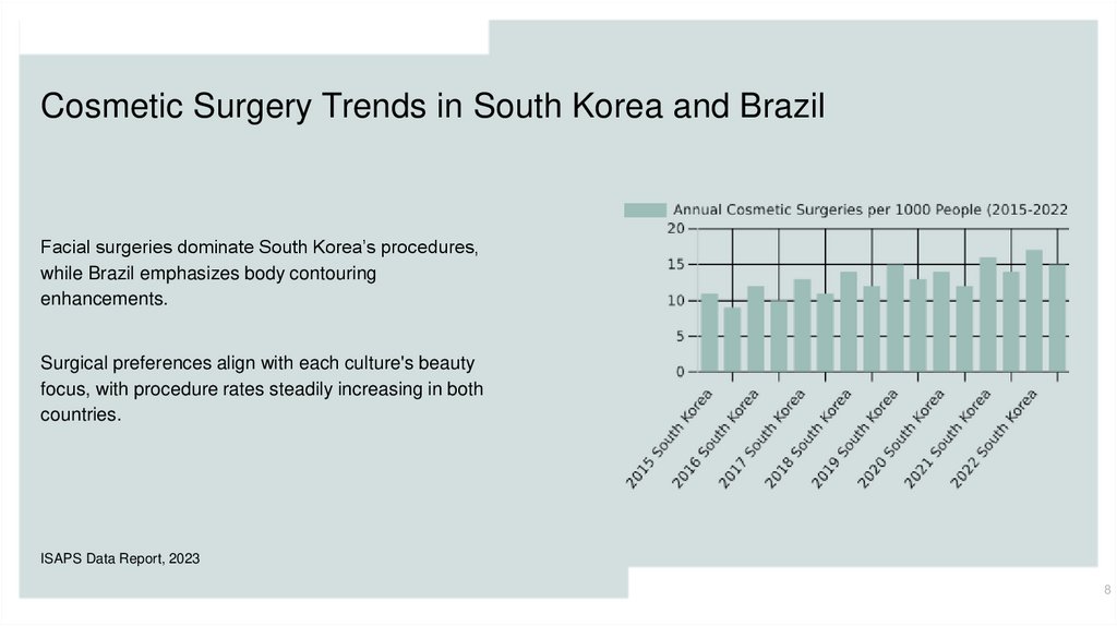 Cosmetic Surgery Trends in South Korea and BrazilFacial surgeries dominate South Korea’s procedures,