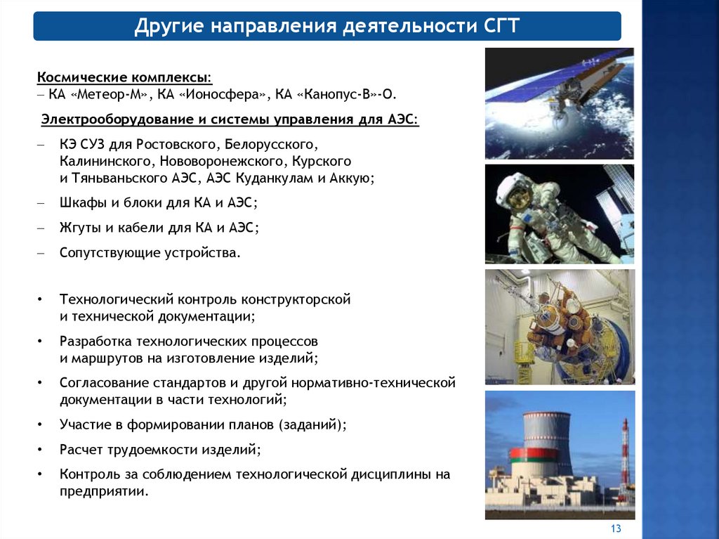 Другие направления деятельности СГТКосмические комплексы: