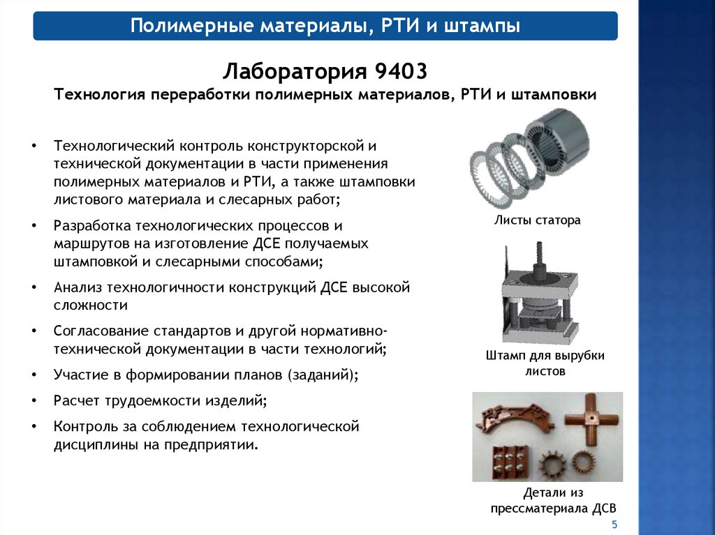 Полимерные материалы, РТИ и штампыЛаборатория 9403