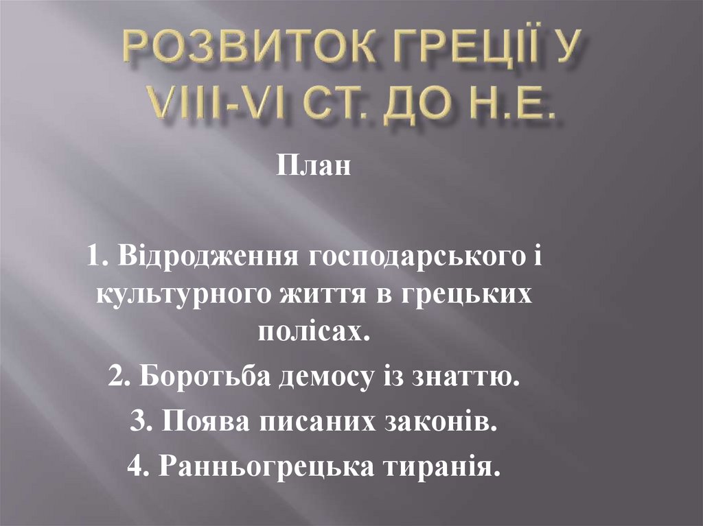 1. Розвиток Греції у VIII-VI ст. до н.е.