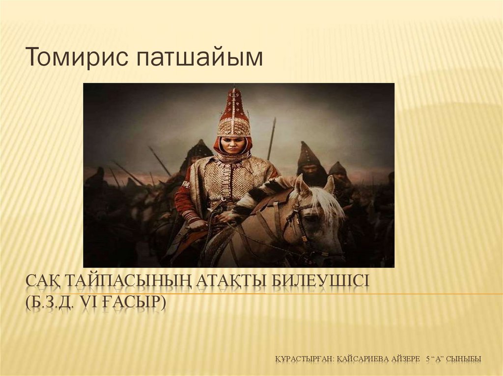 1. Сақ тайпасының атақты билеушісі (б.з.д. VI ғасыр) Құрастырған: Қайсариева Айзере 5 “А” сыныбы
