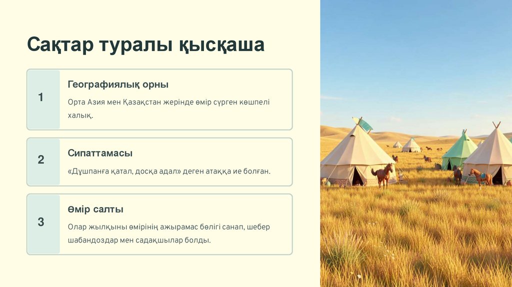 Сақтардың мәдениеті мен өміріМал шаруашылығымен айналысқан