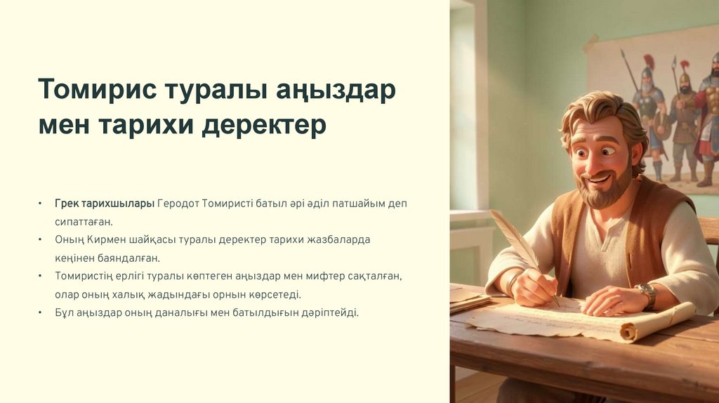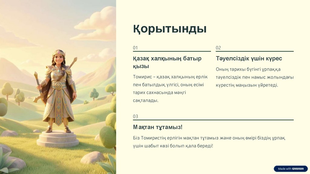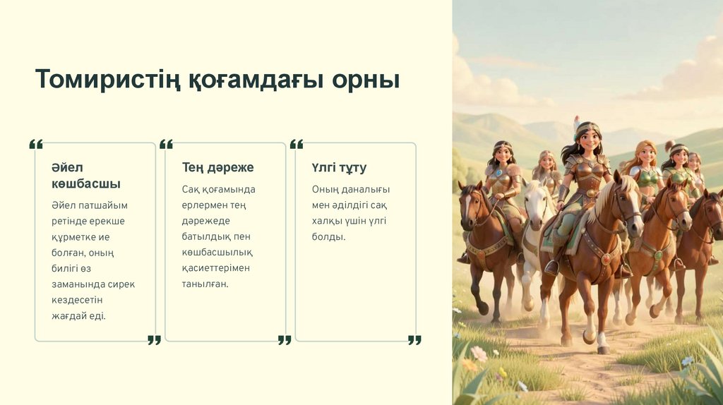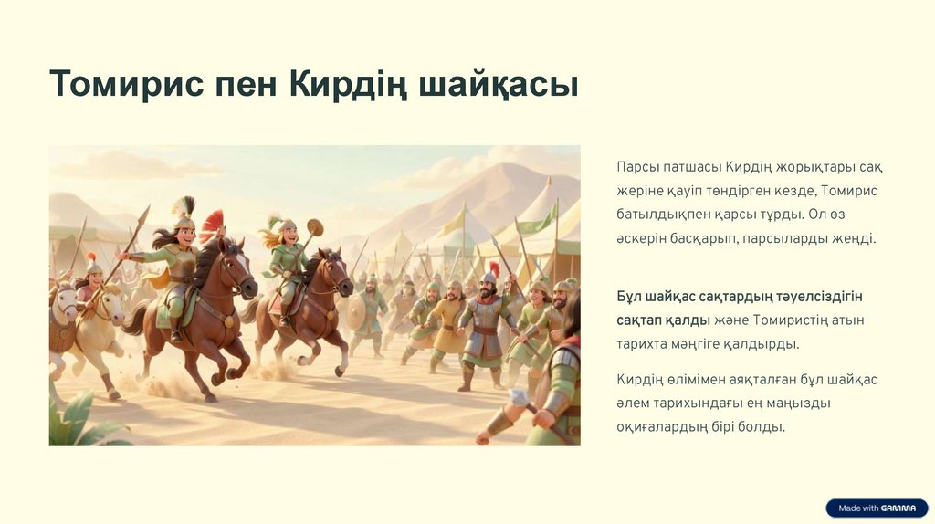 Бұл презентацияда біз тарих сахнасында ерекше орын алған Томирис