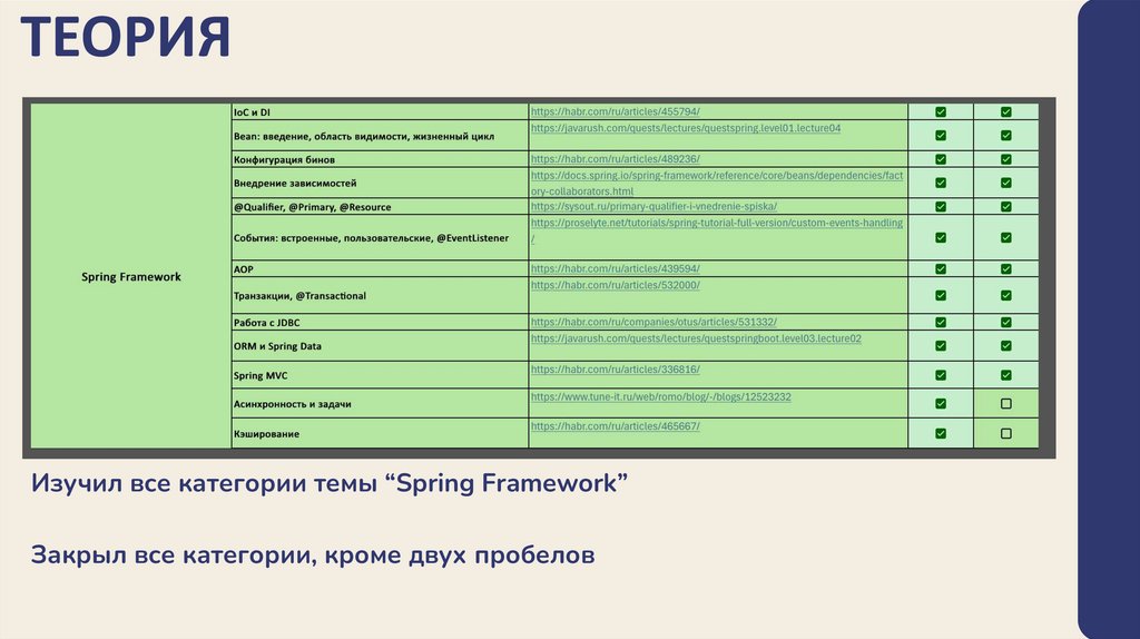 ТЕОРИЯИзучил все категории темы “Spring Framework”