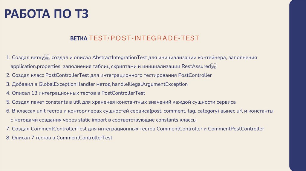 4. Описал 13 интеграционных тестов в PostControllerTest