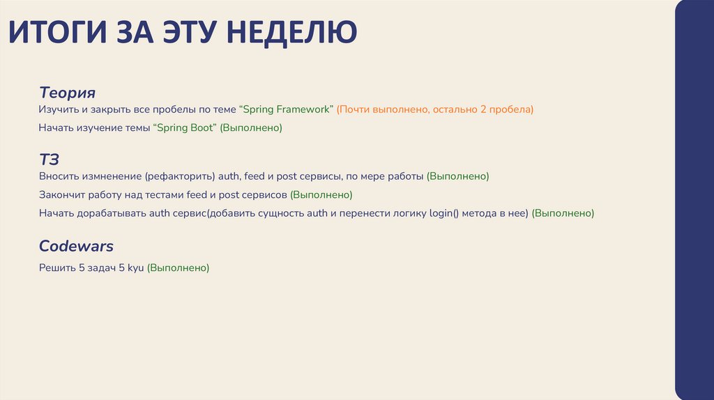 ИТОГИ ЗА ЭТУ НЕДЕЛЮТеория