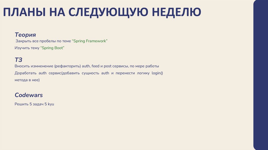 ПЛАНЫ НА СЛЕДУЮЩУЮ НЕДЕЛЮТеория