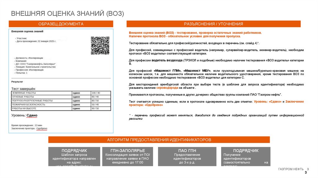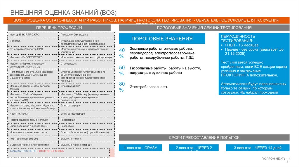 Внешняя оценка знаний (ВОЗ) - тестирование, проверка остаточных знаний работников.