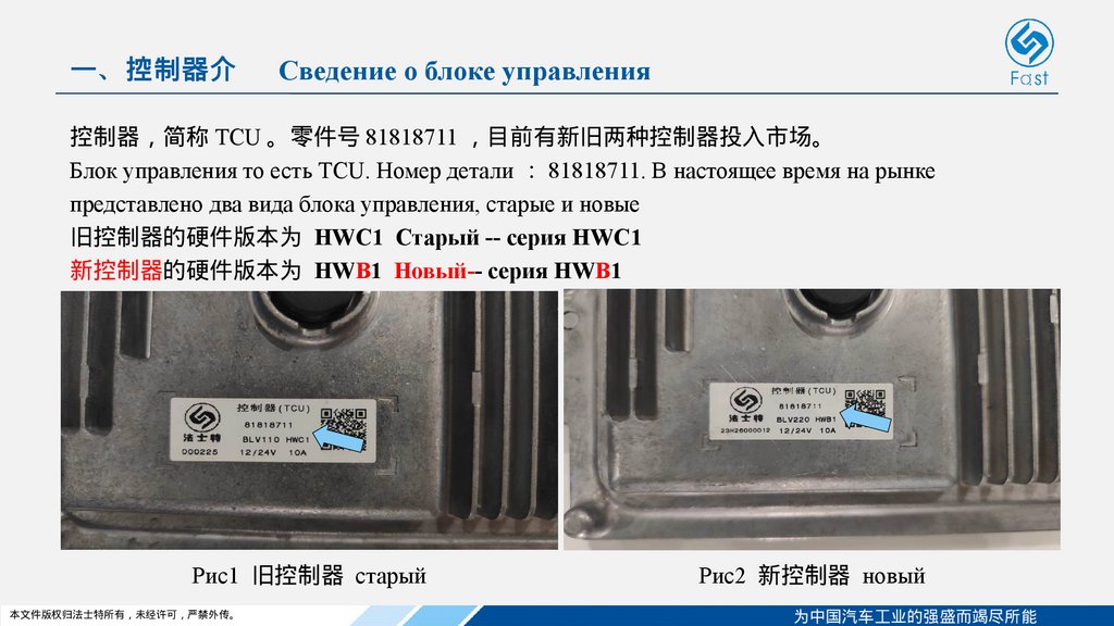 控制器 简称 TCU 。零件号 81818711 目前有新旧两种控制器投入市场。