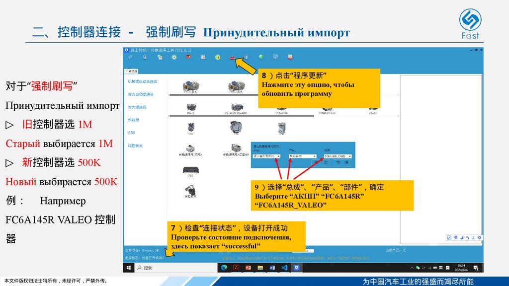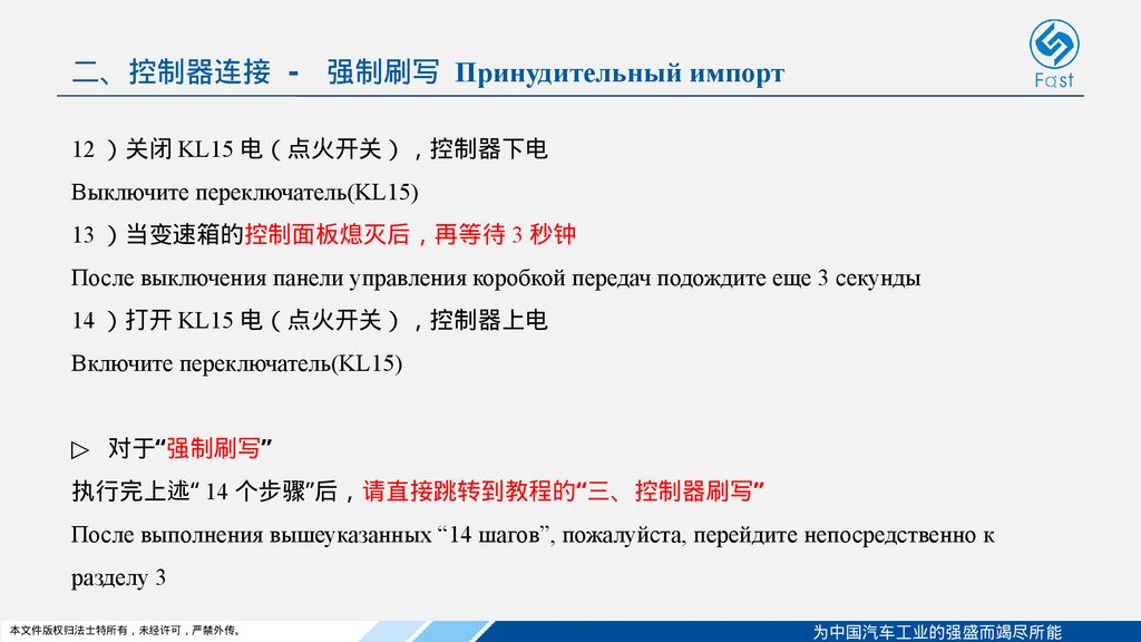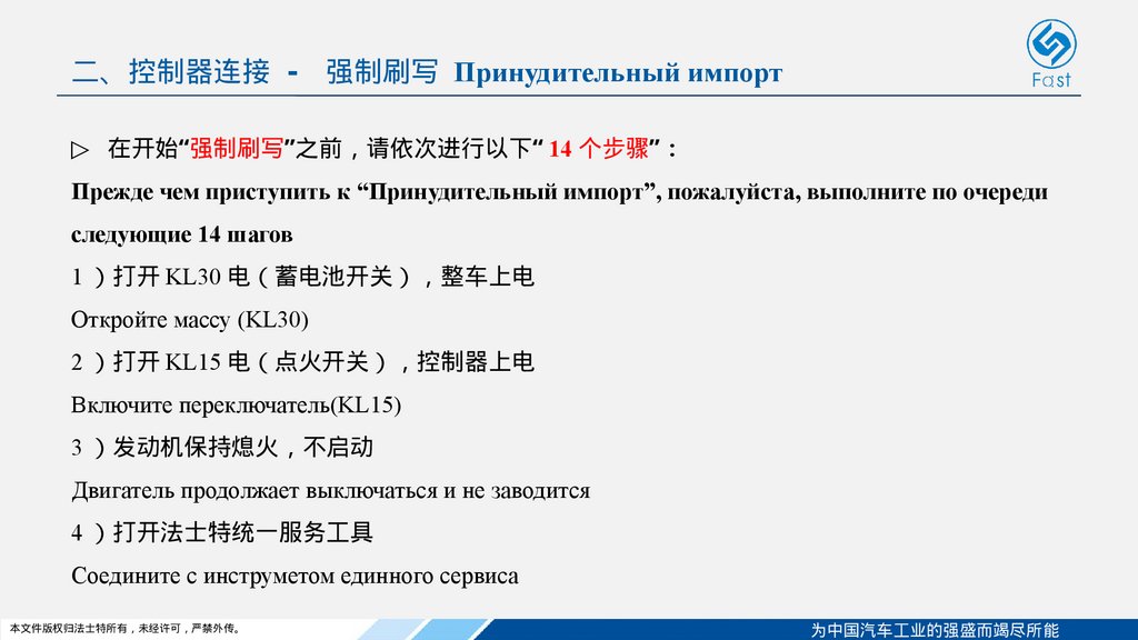 二、控制器连接 - 强制刷写 Принудительный импорт▷ 在开始“强制刷写”之前 请依次进行以下“ 14 个步骤”