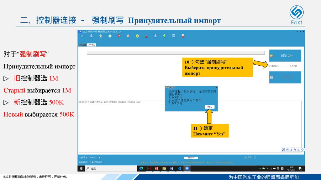 二、控制器连接 - 强制刷写 Принудительный импорт对于“强制刷写”
