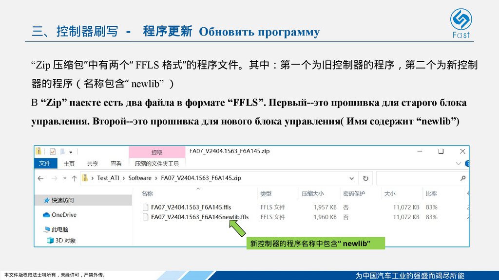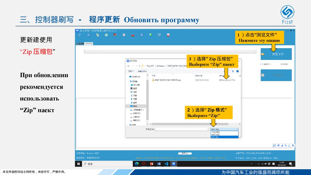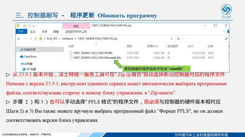 ▷ 从 23.9.1 版本开始 法士特统一服务工具可在“ Zip 压缩包”自动选择新旧控制器对应的程序文件