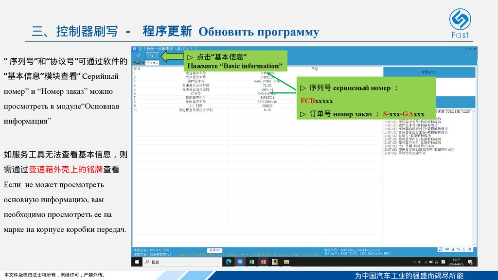 三、控制器刷写 - 程序更新 Обновить программу“ 序列号”和“协议号”可通过软件的