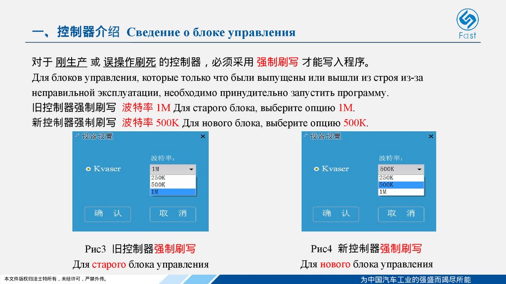 新控制器强制刷写 波特率 500K Для нового блока, выберите опцию 500К.