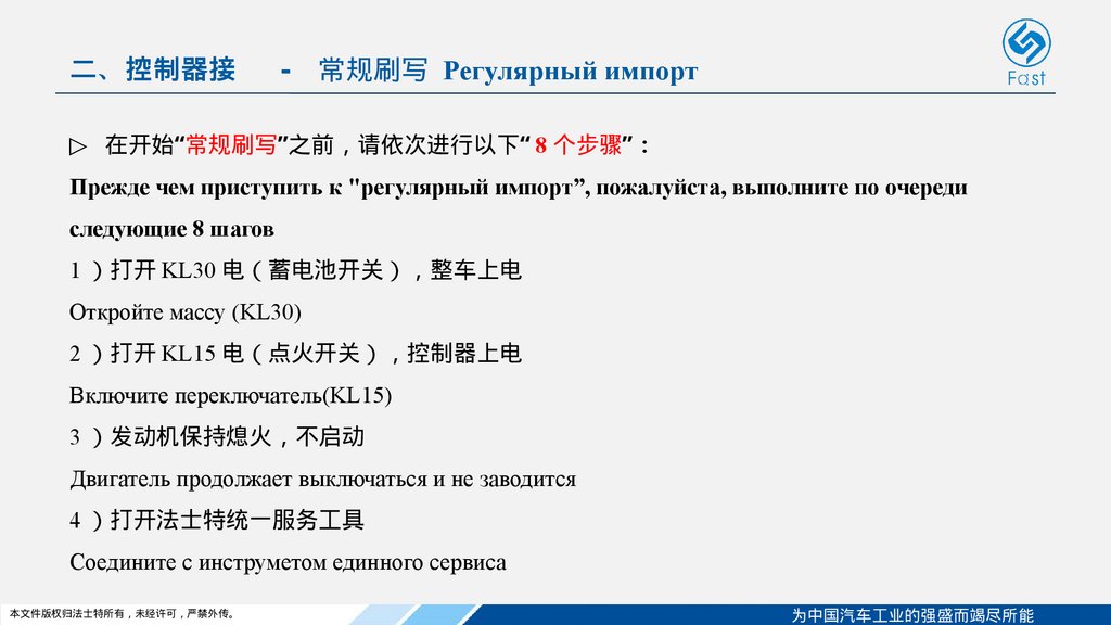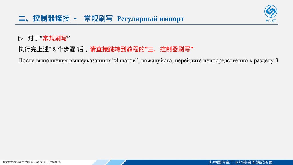 二、控制器连接 - 常规刷写 Регулярный импорт二、控制器接
