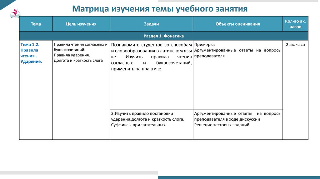 Тема 1.2 Правила чтения. Ударение