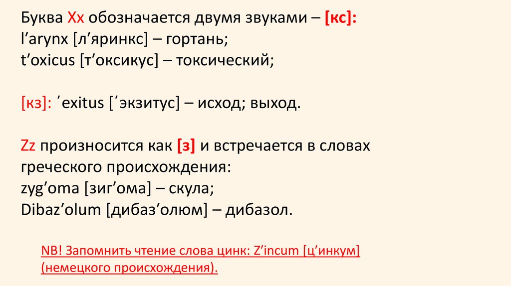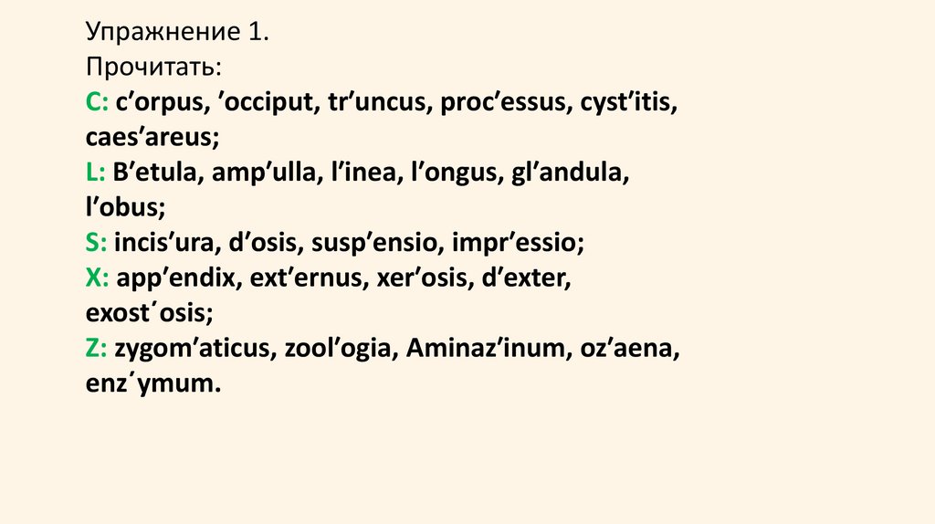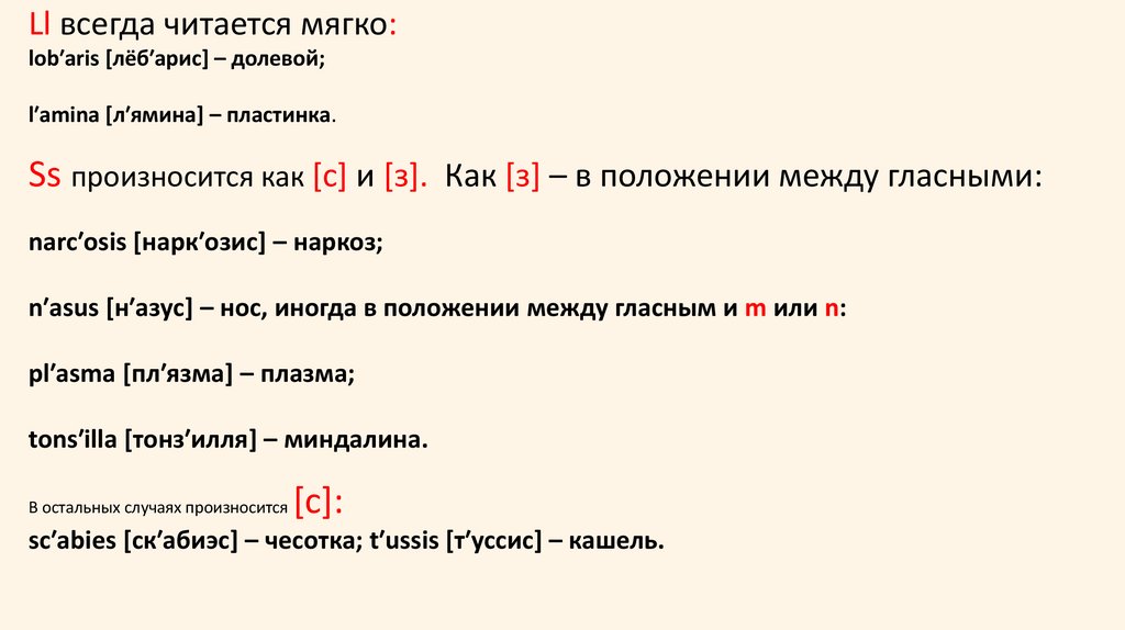 произношении латинских слов и