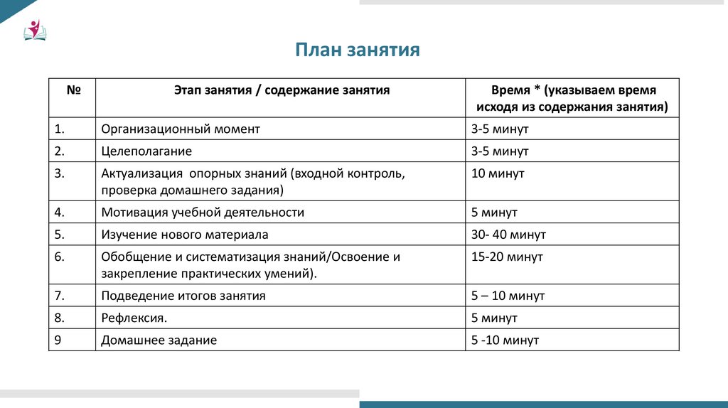 План занятия№