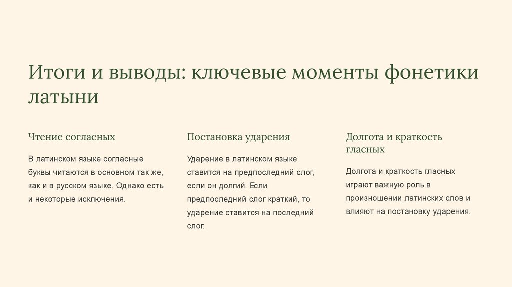 Итоги и выводы: ключевые моменты фонетикилатыни