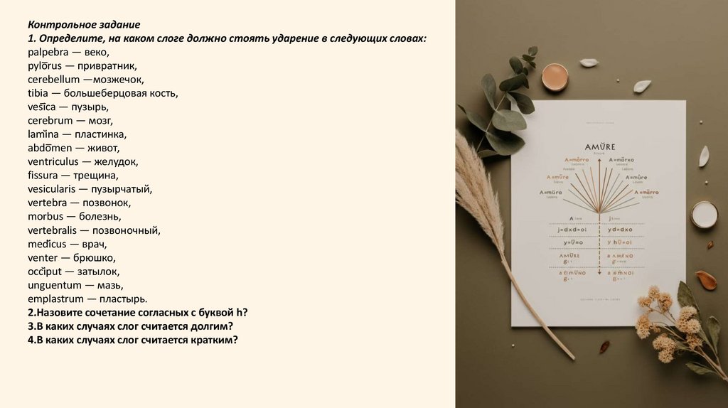 Контрольное задание1. Определите, на каком слоге должно стоять ударение в следующих словах: