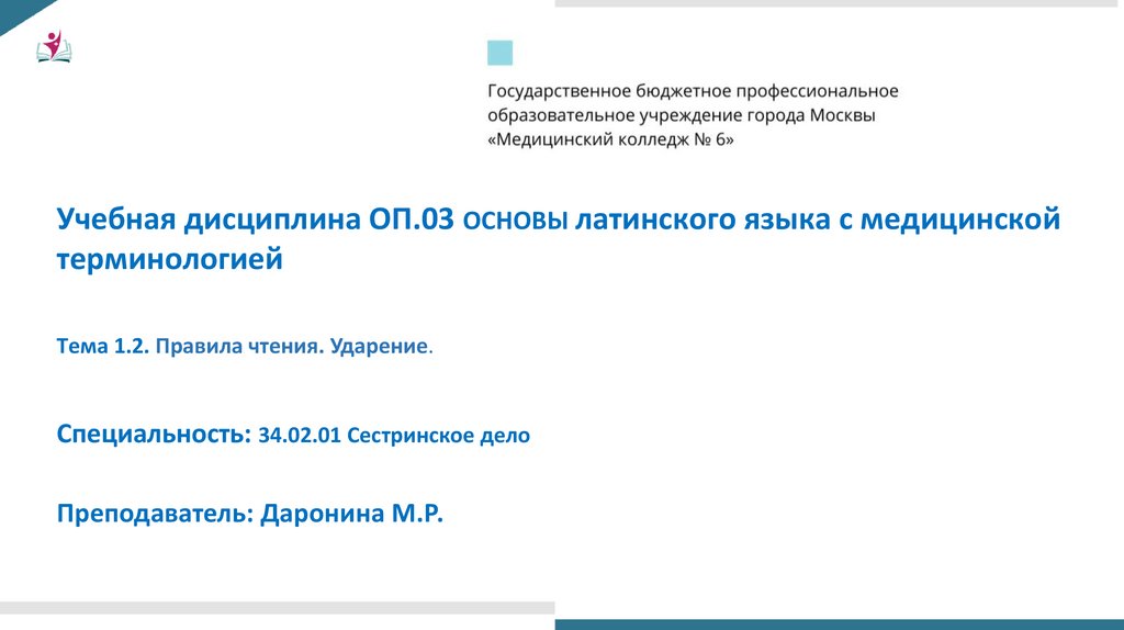 Учебная дисциплина ОП.03 ОСНОВЫ латинского языка с медицинскойтерминологией