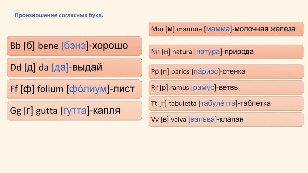 Произношение согласных букв.Mm [м] mamma [мамма]-молочная железа