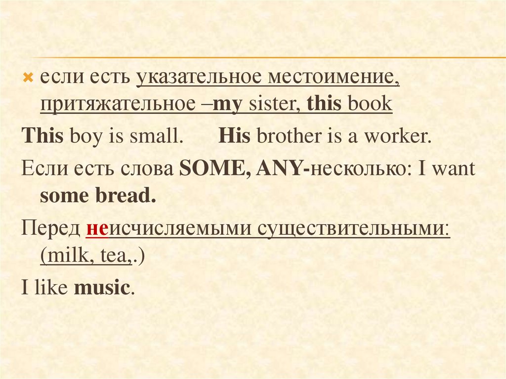 • Отсутствие артикля