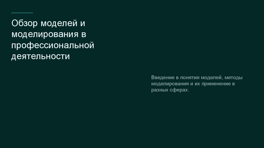 Введение в понятия моделей, методы