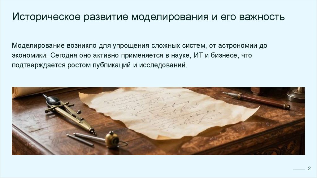 Историческое развитие моделирования и его важностьМоделирование возникло для упрощения сложных систем, от астрономии до