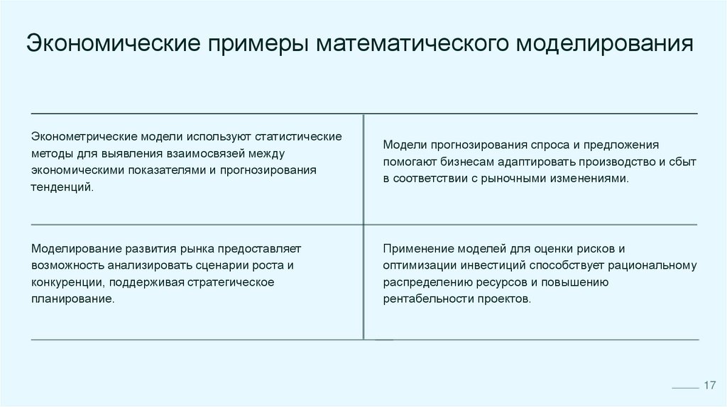 Экономические примеры математического моделированияЭконометрические модели используют статистические