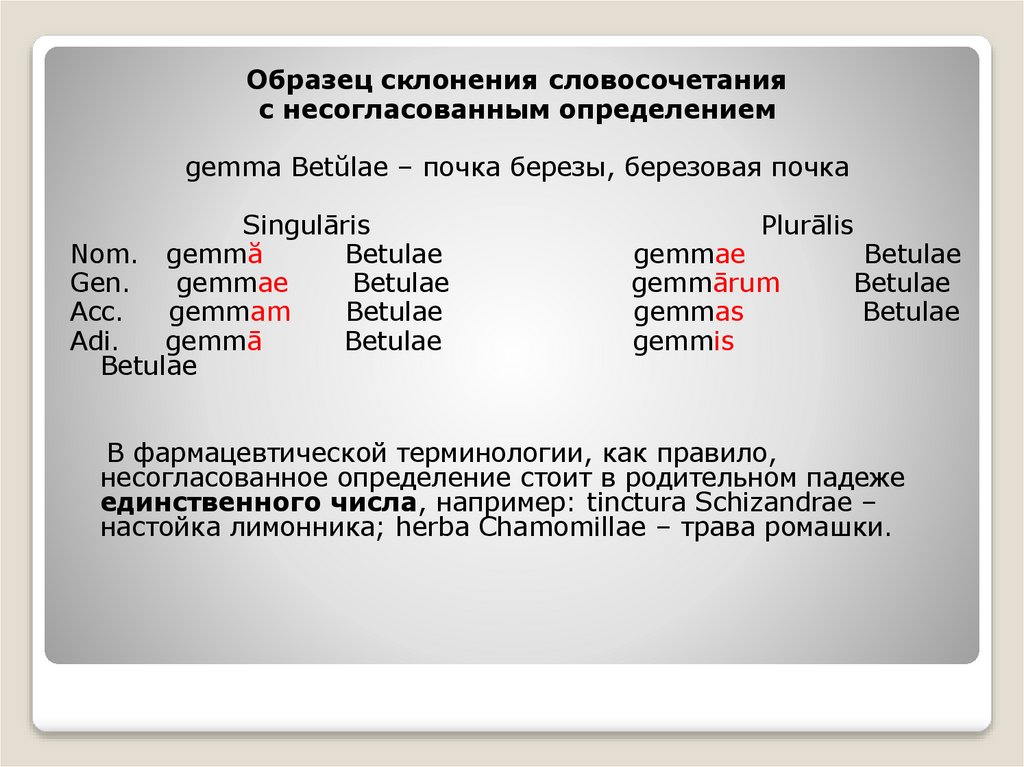 единственного числа, например: tincturа Schizandrae –