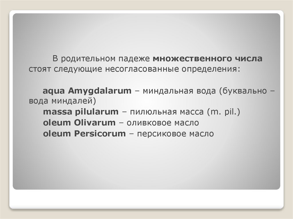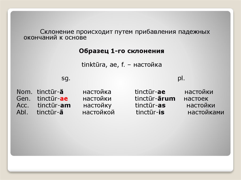 В рецептуре используется 5 падежей (casus):