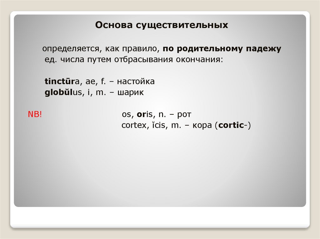 Основа существительныхопределяется, как правило, по родительному падежу