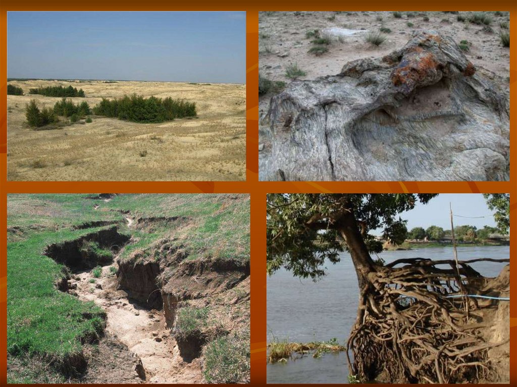 Процессы разрушения и выноса почвенногопокрова потоками воды и ветра.