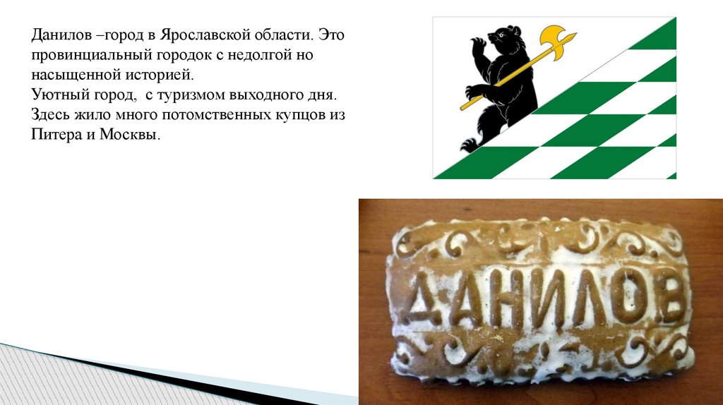 Данилов –город в Ярославской области. Этопровинциальный городок с недолгой но
