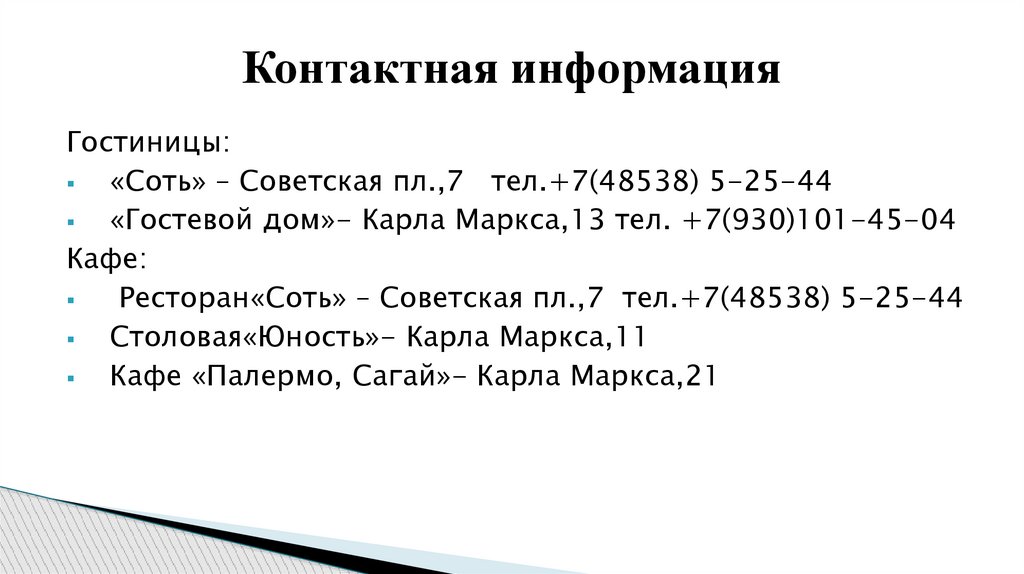 Контактная информацияГостиницы: