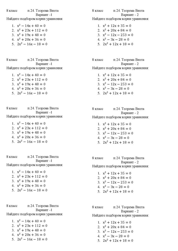 8 классп.24. Теорема Виета