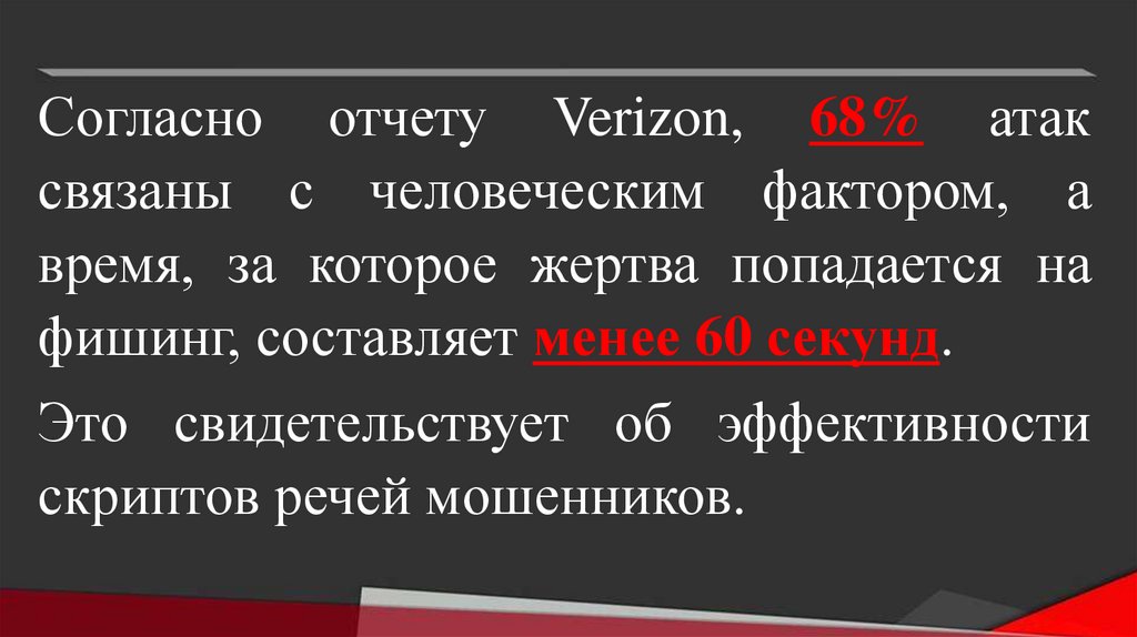 Согласно отчету Verizon, 68% атаксвязаны с человеческим фактором, а