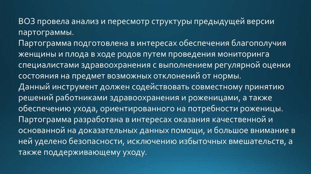 ВОЗ провела анализ и пересмотр структуры предыдущей версиипартограммы.