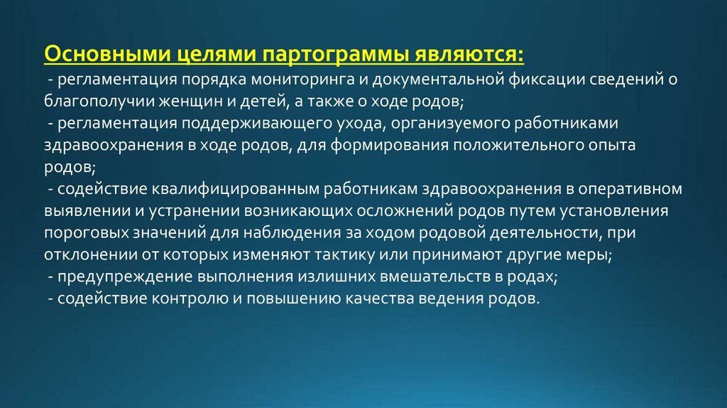 Основными целями партограммы являются:- регламентация порядка мониторинга и документальной фиксации сведений о