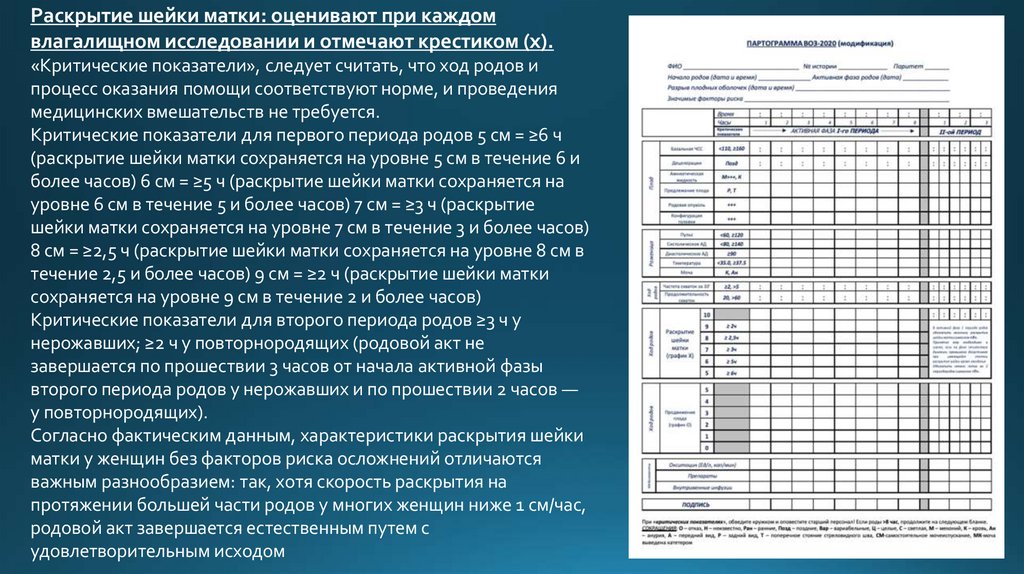 «Критические показатели», следует считать, что ход родов и
