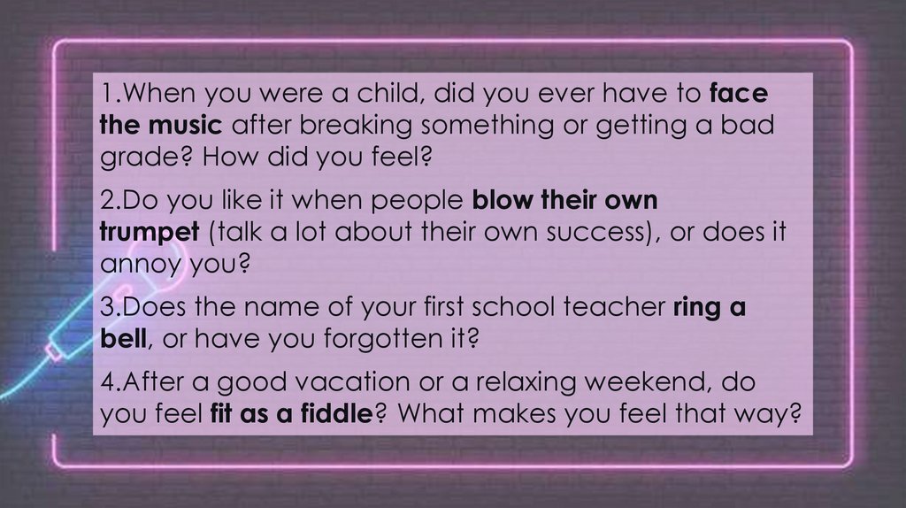 1.When you were a child, did you ever have to facethe music after breaking something or getting a bad
