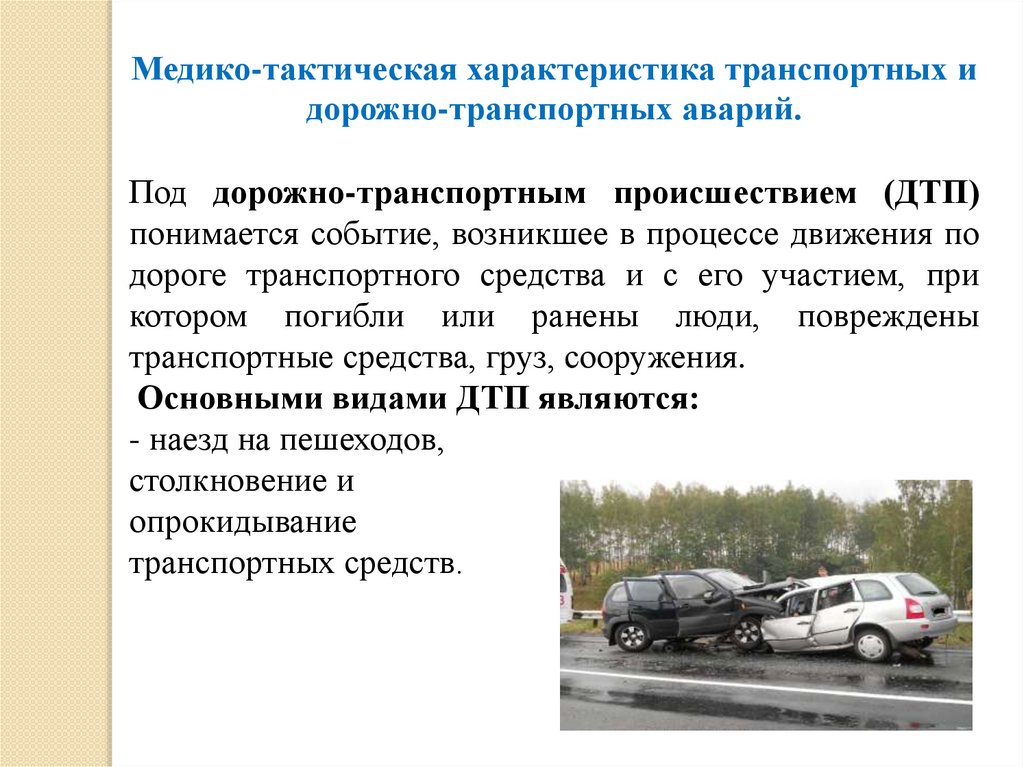 Медико-тактическая характеристика транспортных идорожно-транспортных аварий.