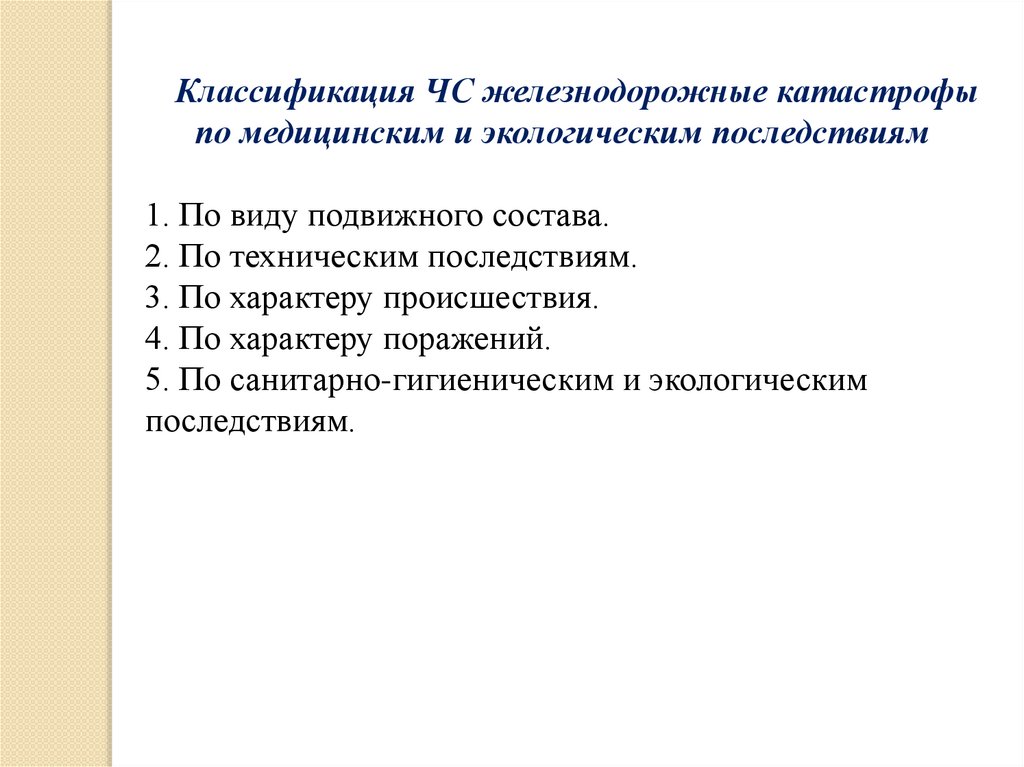 Классификация ЧС железнодорожные катастрофыпо медицинским и экологическим последствиям