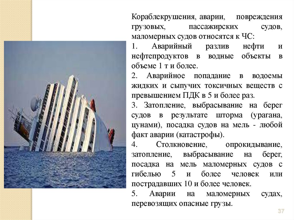 Водные аварии чаще всего происходят под действиемураганов, штормов, туманов, а также по вине людей