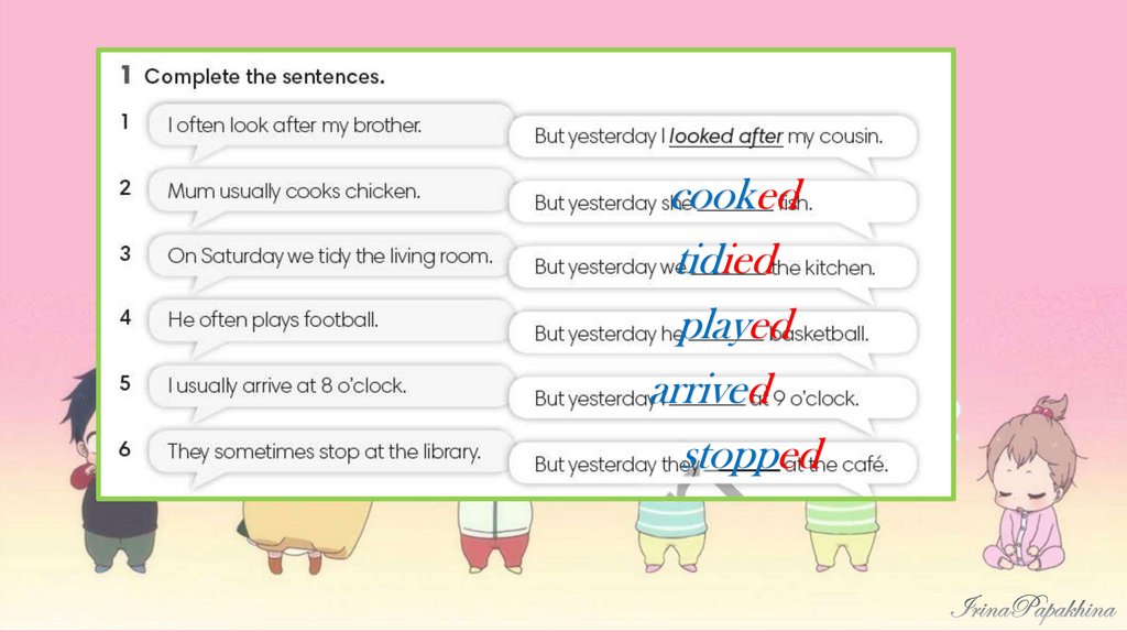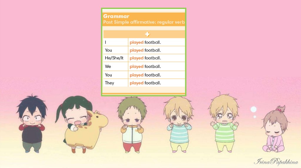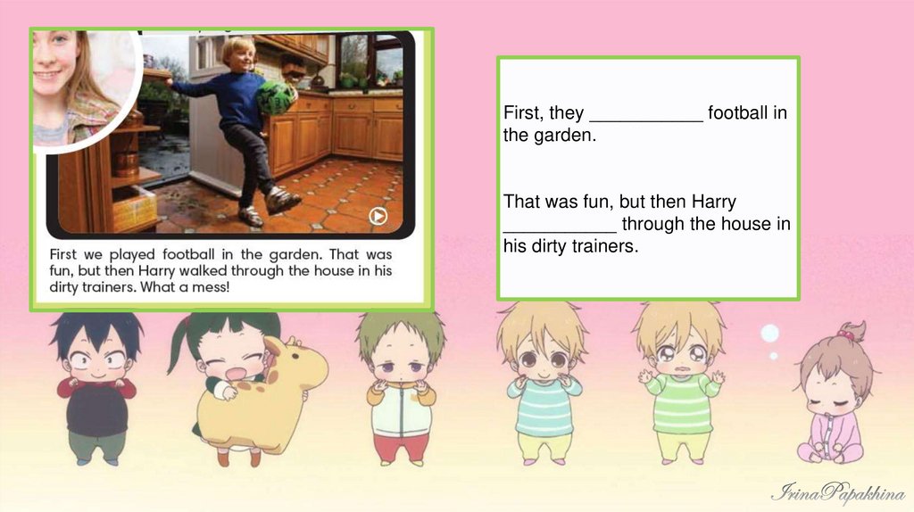 First, they ___________ football inthe garden.