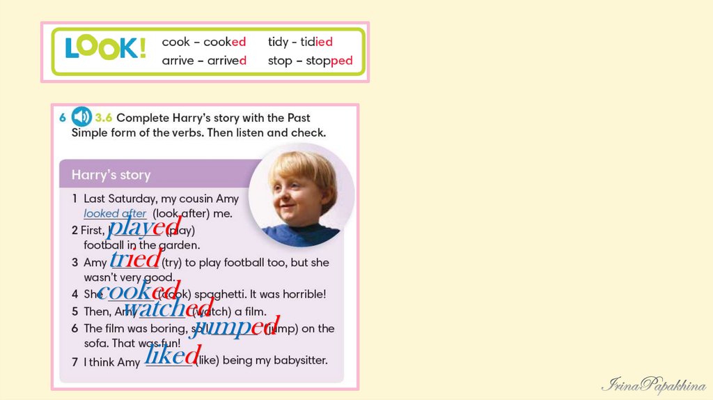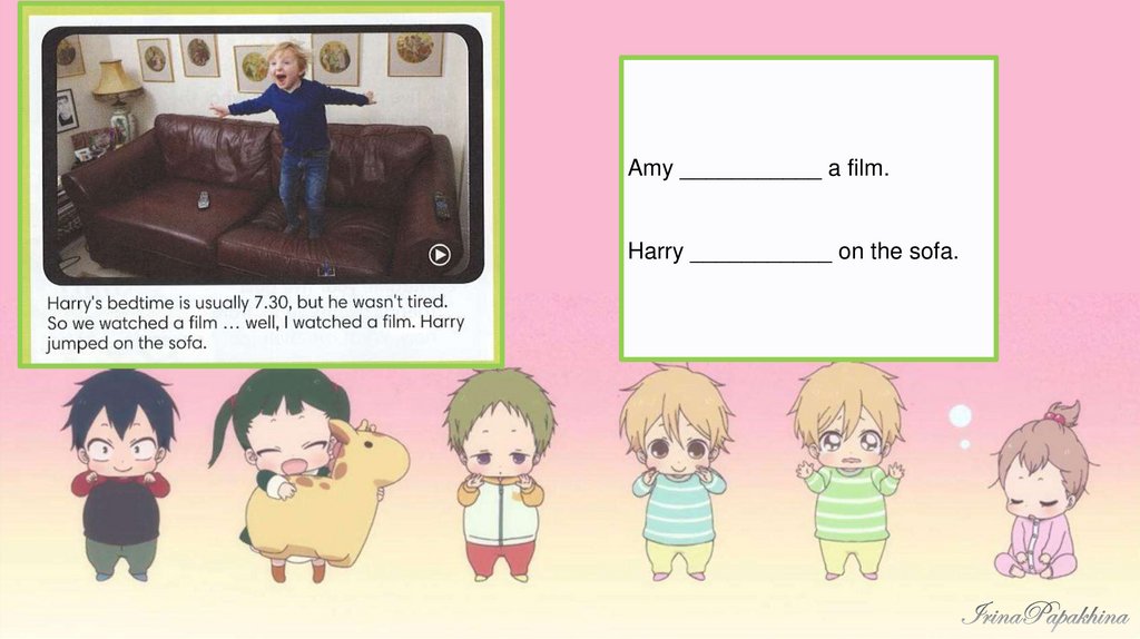 Amy ___________ a film.Harry ___________ on the sofa.