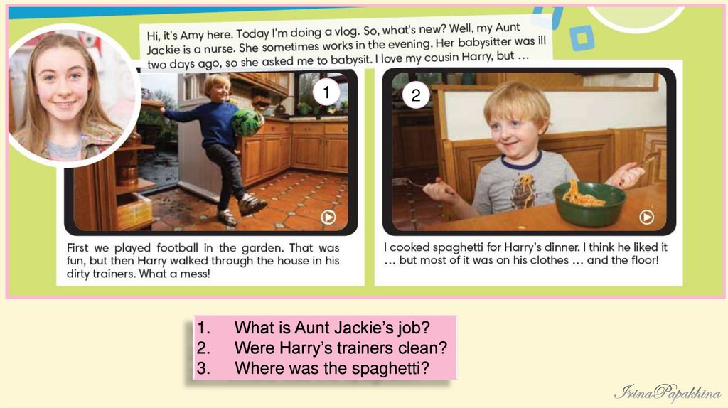 Watch the videoand say who asked Amy to babysit.